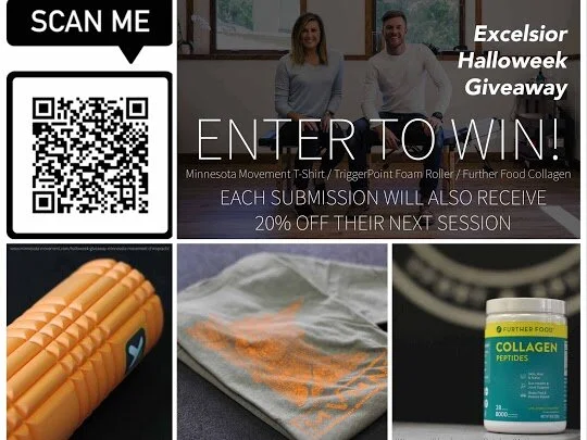 Minnesota Movement is happy to be a part of the Excelsior Chamber of Commerce’s HalloWEEK Scavenger Hunt but even more so - we’re happy to give away an awesome deal!
